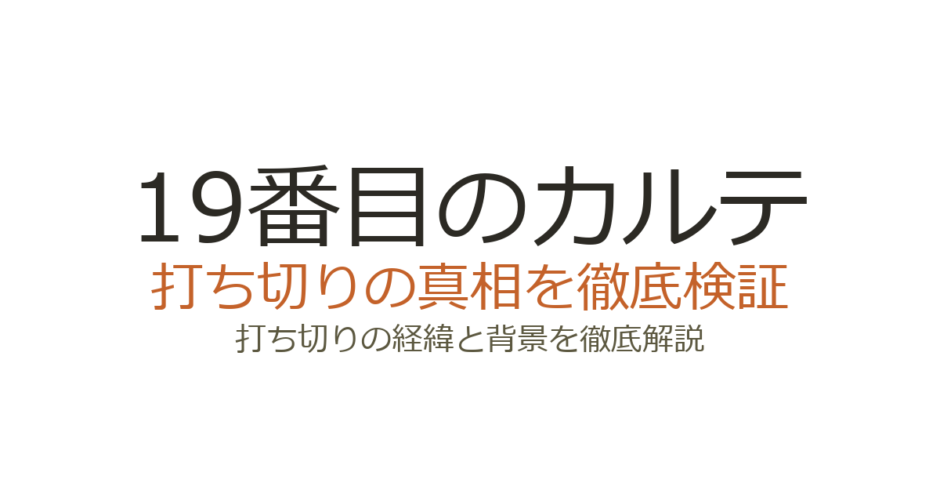 TBS日曜劇場「19番目のカルテ」は、打ち切りではありません。日曜劇場としては異例の全8話で終了したことや、出演者・清水尋也の逮捕が重なり打ち切り説が広まりました。この記事では、打ち切りと言われた理由と打ち切りではない根拠を、視聴率データや編成事情をもとに解説します。