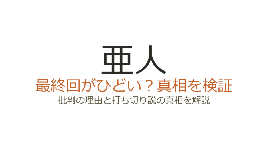 『亜人』の最終回は「ひどい」「駆け足すぎる」といった批判的な声が少なくありません。海外編への布石が回収されなかったことや、ラスボス・佐藤との決着があっけなかったことが主な不満の原因です。この記事では、最終回が批判された具体的な理由と、打ち切りだったのかどうかを詳しく解説します。