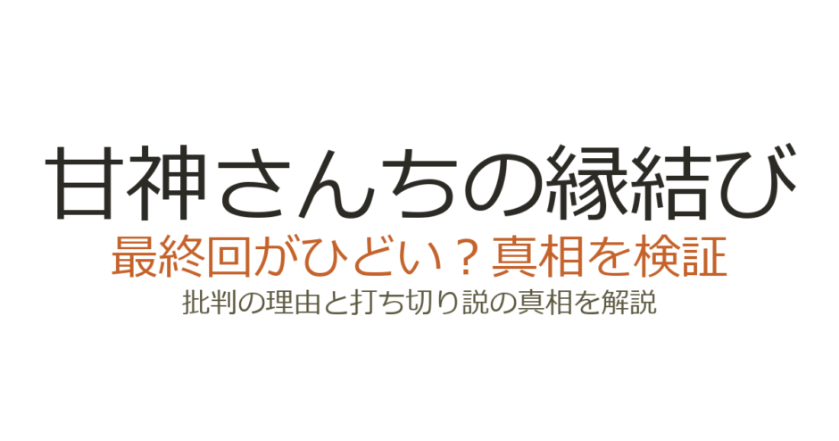 『甘神さんちの縁結び』の最終回は、選ばれなかったヒロインのファンを中心に「ひどい」という声が上がりました。約4年半の連載を経て全22巻で完結した本作ですが、結末の描き方に賛否が分かれたことが批判の主な原因です。この記事では、最終回が批判された具体的な理由と、打ち切りだったのかどうかを詳しく解説します。
