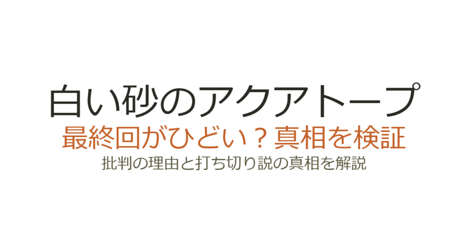 白い砂のアクアトープの最終回がひどいと言われる理由