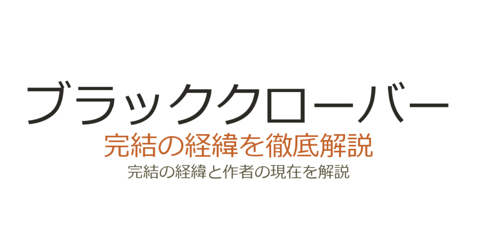 「ブラッククローバー 完結」「ブラクロ 完結」と検索する方が多いですが、結論から言うとブラッククローバーはまだ完結していません。ここでは2026年4月時点の最新情報をお伝えします。