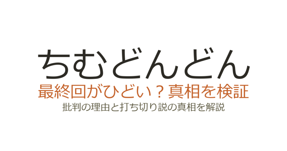 NHK朝ドラ『ちむどんどん』の最終回は、SNSで「#ちむどんどん反省会」がトレンド入りするほど厳しい評価を受けました。40年の時間経過を一瞬で飛ばす演出や、重病キャラクターの唐突な回復など、視聴者が納得できない展開が複数重なったことが原因です。この記事では、最終回がひどいと言われた具体的な理由と、打ち切りだったのかどうかを客観的に検証します。
