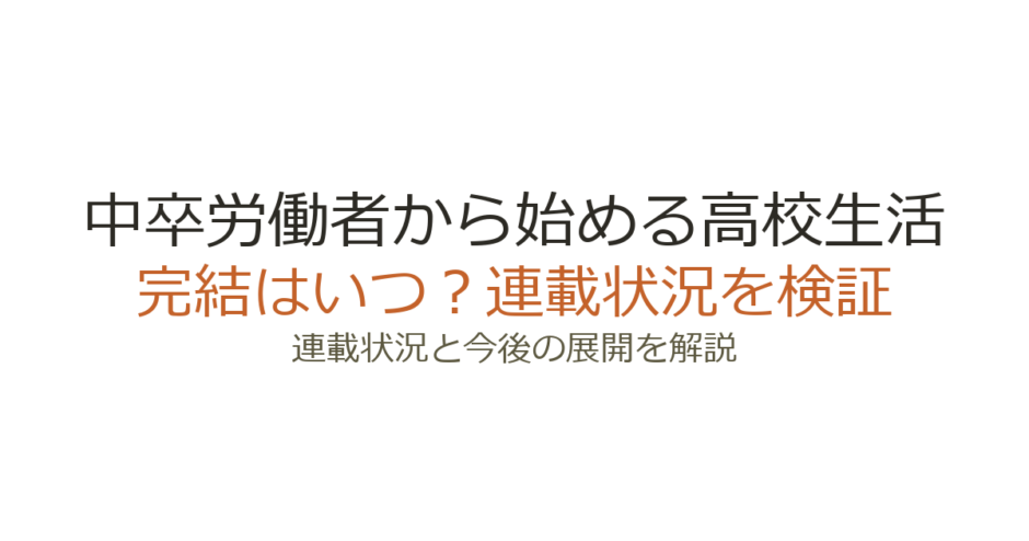 中卒労働者から始める高校生活は完結していない!連載状況と最終章の展開