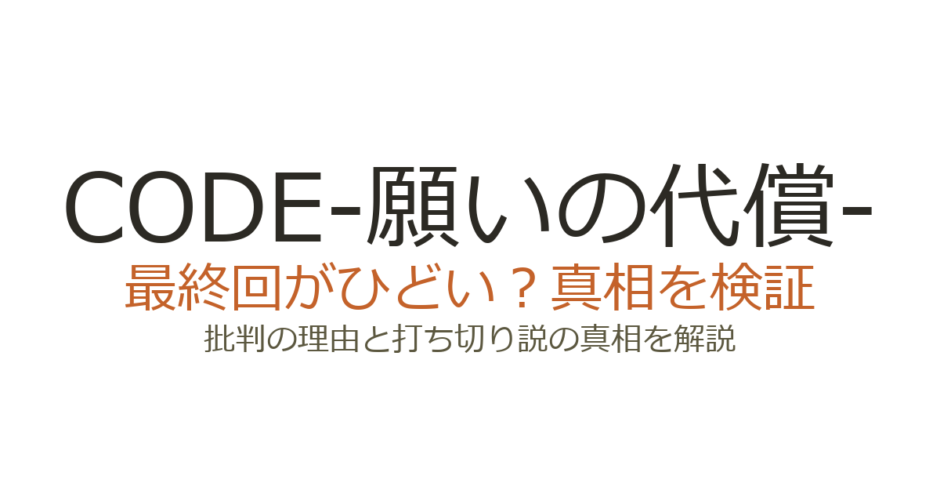 『CODE-願いの代償-』の最終回がひどいと言われる理由
