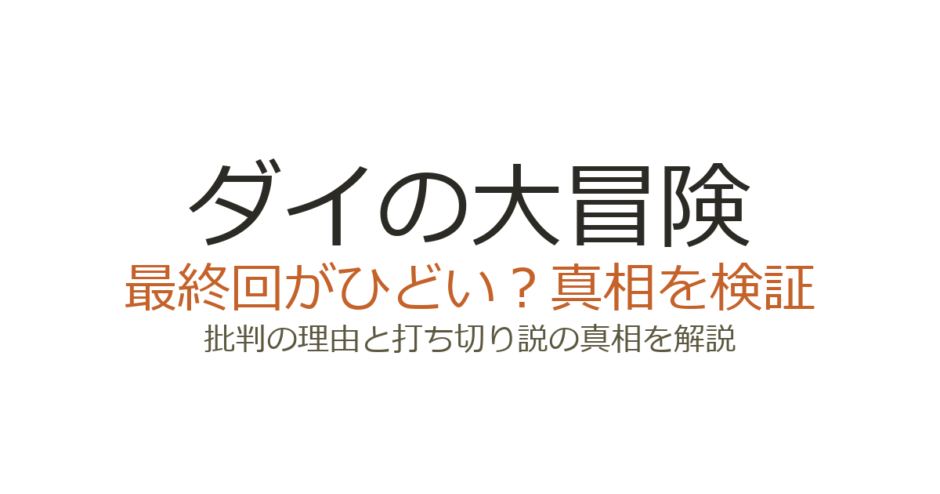 「ダイの大冒険の最終回がひどい」という評価の一部は、1991年版アニメが途中で終了した記憶と混同されているケースがあります。1991年版アニメは全46話で放送されましたが、原作の竜騎将バラン編の途中で終了しています。