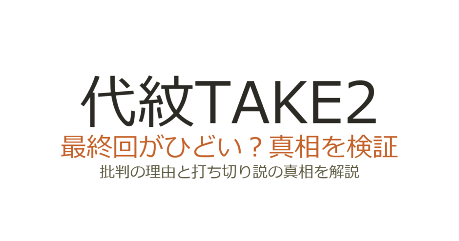 代紋TAKE2の最終回がひどいと言われる理由
