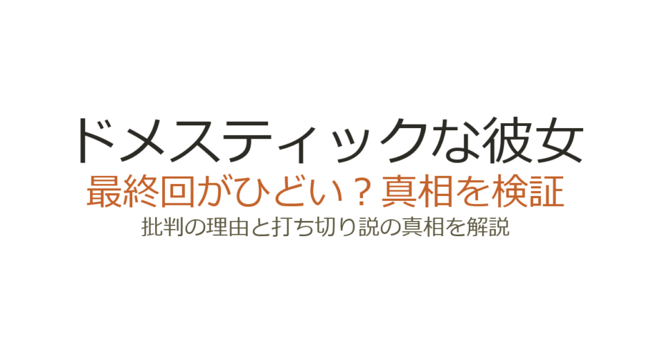 『ドメスティックな彼女』の最終回は「ひどい」「気持ち悪い」と批判が集中し、連載終了から数年経った今もネット上で議論が続いています。批判の最大の原因は、物語終盤でメインヒロインが事実上入れ替わり、それまで積み上げてきた恋愛描写が覆されたことにあります。この記事では、最終回が批判された具体的な理由と、打ち切りだったのかどうかを客観的なデータとともに解説します。