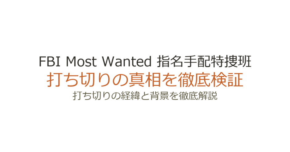 『FBI: Most Wanted 〜指名手配特捜班〜』は、シーズン6をもって打ち切りが確定しています。2025年3月にCBSがシーズン7を更新しないと発表し、同年5月20日に最終回を迎えました。この記事では、視聴率が安定していたにもかかわらず打ち切られた理由や、主演俳優の降板騒動、制作者ディック・ウルフの新プロジェクトについて解説します。