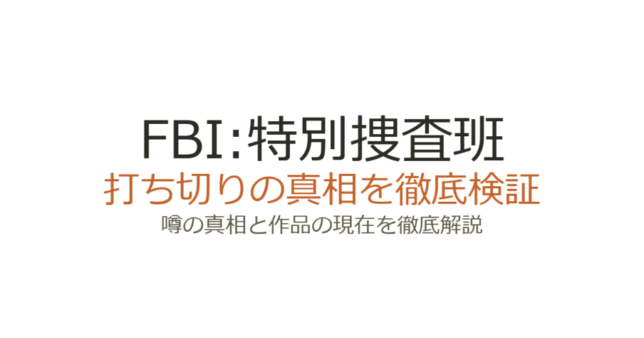 『FBI:特別捜査班』は打ち切りではなく、本編はシーズン9までの更新が確定しており、2027年まで放送が続く予定です。打ち切りと誤解された主な原因は、スピンオフ作品2本の終了発表や主演女優の一時離脱にあります。この記事では、打ち切りと言われた理由3つと、本編が継続している根拠を詳しく解説します。