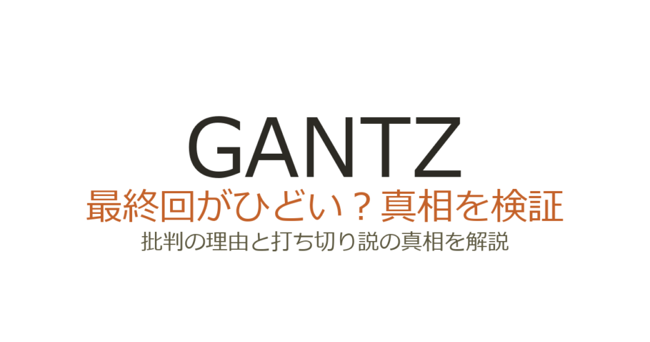 GANTZは2000年から2013年まで週刊ヤングジャンプで連載された奥浩哉の代表作です。累計発行部数2,100万部を超える人気作品でしたが、最終回の評価は厳しいものでした。