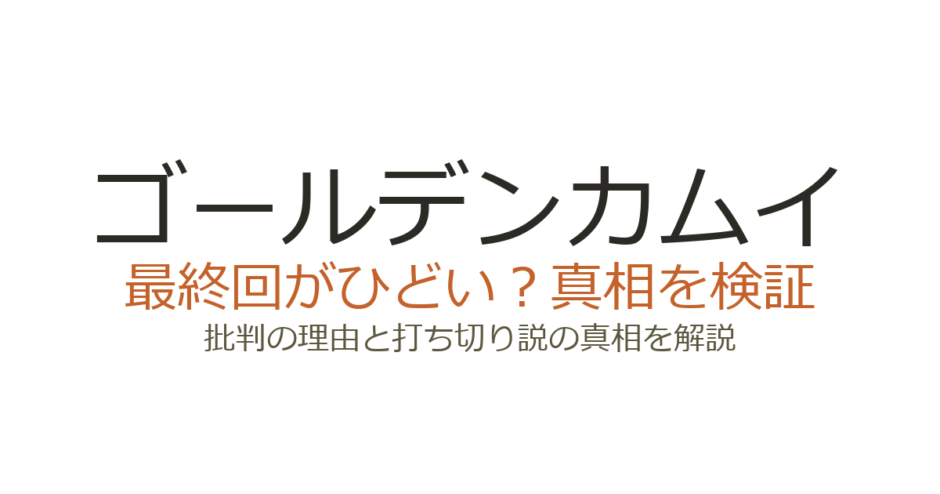 『ゴールデンカムイ』の最終回は、駆け足展開やギャグ色の強い結末が一部読者の間で「ひどい」と話題になりました。しかし最終回への不満が出た一方で、「大団円にふさわしい」と肯定する声が多数を占めており、打ち切りによる終了ではありません。この記事では最終回が批判された具体的な理由と、打ち切り説やアニメ打ち切り説の真相を詳しく解説します。