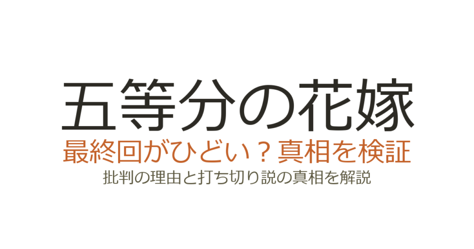 『五等分の花嫁』は2020年2月に最終回を迎えましたが、その結末をめぐってファンの間で激しい議論が巻き起こりました。ここでは、最終回が「ひどい」と批判された主な理由を整理します。