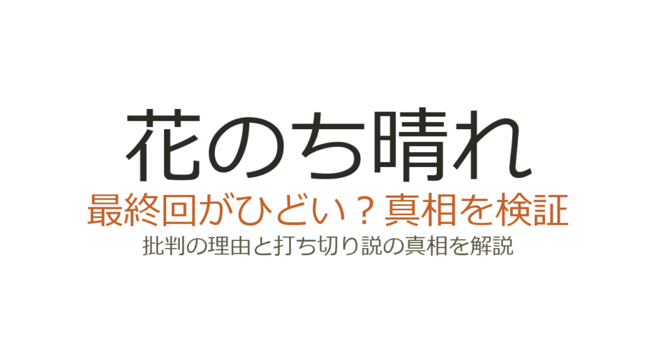 ドラマ『花のち晴れ』は2018年6月26日に最終回(第11話)を迎えましたが、放送直後からSNSを中心に「ひどい」「何この終わり方」という批判が噴出しました。「打ち切り漫画の最終回みたい」という声まで上がるほど、視聴者の落胆は大きいものでした。その背景には、脚本の構成からキャラクター描写まで複数の問題が指摘されています。