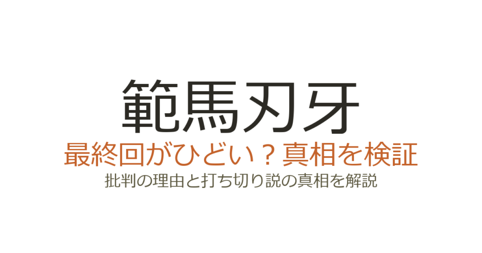 『範馬刃牙』の最終回は、父・範馬勇次郎との「地上最強の親子喧嘩」が予想外の形で決着したことから、「ひどい」「打ち切りなのでは」という声が多数上がりました。シリーズ通して描かれてきた親子対決の結末が格闘ではなく「エア食事」だったこと、母の仇討ちが有耶無耶になったことが批判の中心です。この記事では、最終回がひどいと言われる具体的な理由と、打ち切りだったのかどうかを解説します。