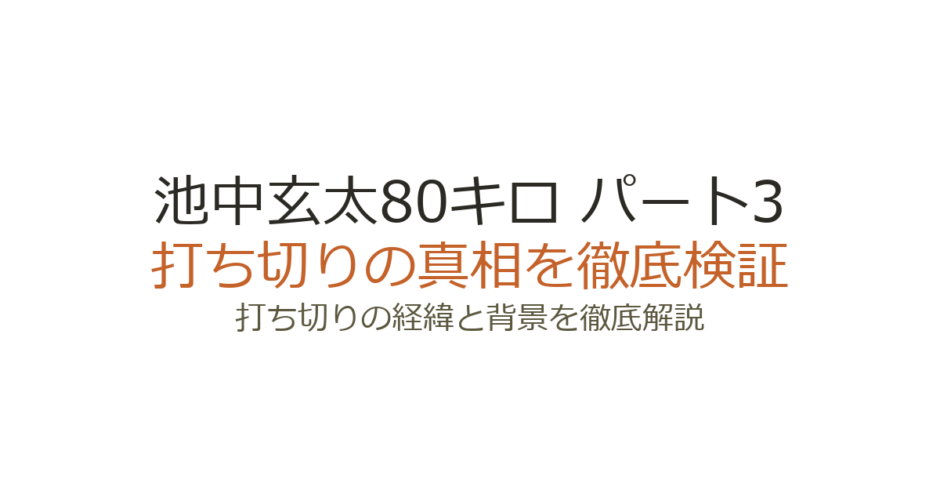 池中玄太80キロ パート3は本当に打ち切りなのか?