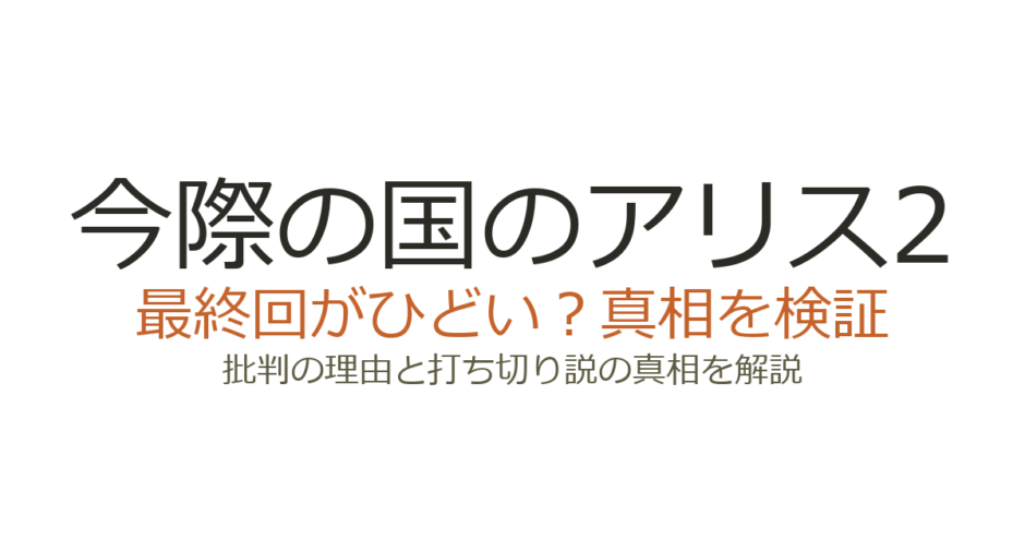 Netflixドラマ『今際の国のアリス』シーズン2の最終回は、「夢オチでは?」「結局なんだったの?」という批判が多く寄せられ、「ひどい」と言われています。