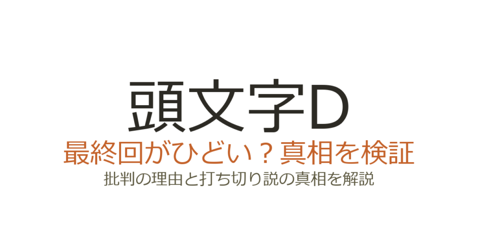 『頭文字D(イニシャルD)』の最終回は「ひどい」「唐突すぎる」とネット上で批判されていますが、その多くは18年間の連載に対してラストがあっさりしすぎたことへの不満です。連載終了の経緯やラスボス・乾信司の唐突な登場、ハチロクのエンジンブローなど、賛否が割れた要素は複数あります。この記事では、最終回が批判された理由と打ち切りだったのかどうかを客観的に検証していきます。