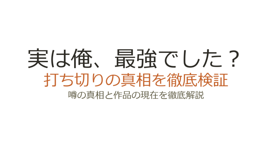 『実は俺、最強でした?』は打ち切りではなく、2026年3月現在も漫画・小説ともに連載が続いている作品です。アニメが全12話で終了したことや、Web小説の更新停止・漫画の休載が重なり、打ち切り説が広まりました。この記事では、打ち切りと言われた具体的な理由と、連載が継続している根拠を詳しく解説します。