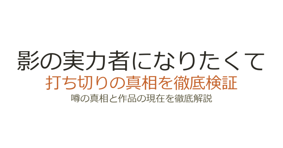 『陰の実力者になりたくて!』の作者・逢沢大介氏は死亡しておらず、存命です。Web版小説の長期更新停止や書籍版の刊行ペースの遅さから「作者が亡くなったのでは」という根拠のない噂が広まりました。この記事では、作者死亡説と打ち切り説が浮上した理由、そして作品の現在の状況を詳しく解説します。