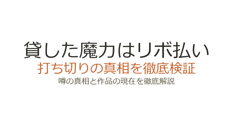 『貸した魔力は【リボ払い】で強制徴収』は打ち切りではなく、Web小説・漫画ともに連載が続いている作品です。「小説家になろう」からの取り下げや小説書籍版が出ていないことが打ち切り説の原因とみられています。この記事では、打ち切りと噂された理由の詳細と、2026年のTVアニメ化を含む作品の最新状況を解説します。