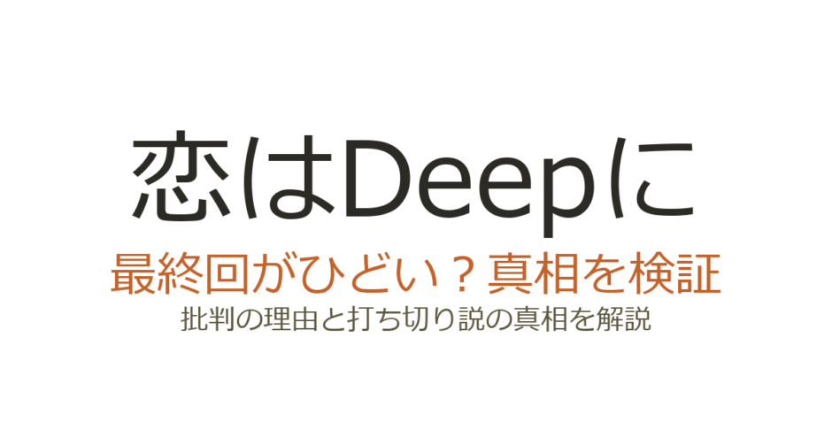 『恋はDeepに』の最終回は、安直な事故展開や人魚設定の消化不良などから「ひどい」と多くの視聴者に批判されました。さらに当初10話予定だった放送が全9話に短縮されており、脚本トラブルや視聴率低迷が背景にあったとされています。この記事では、最終回が批判された具体的な理由と、打ち切りの真相について詳しく解説します。