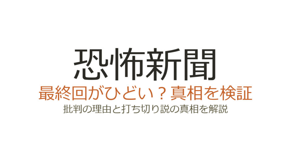 ドラマ『恐怖新聞』の最終回(第7話)は、2020年10月10日の放送直後からSNSやレビューサイトで「ひどい」「後味が悪すぎる」という感想が相次ぎました。Filmarksでのレビューでも否定的な意見が目立ち、賛否が大きく分かれた最終回となっています。