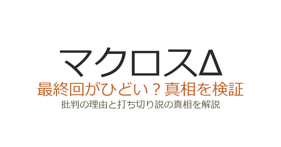 『マクロスΔ(デルタ)』の最終回は、後半のストーリー失速や戦闘シーンの不足から「ひどい」という評価が多く見られます。前作『マクロスF』と比較されやすい立場にあったこともあり、最終回への不満が作品全体の評価を押し下げる結果になりました。この記事では、最終回が批判された具体的な理由と、打ち切りだったのかどうかを解説します。