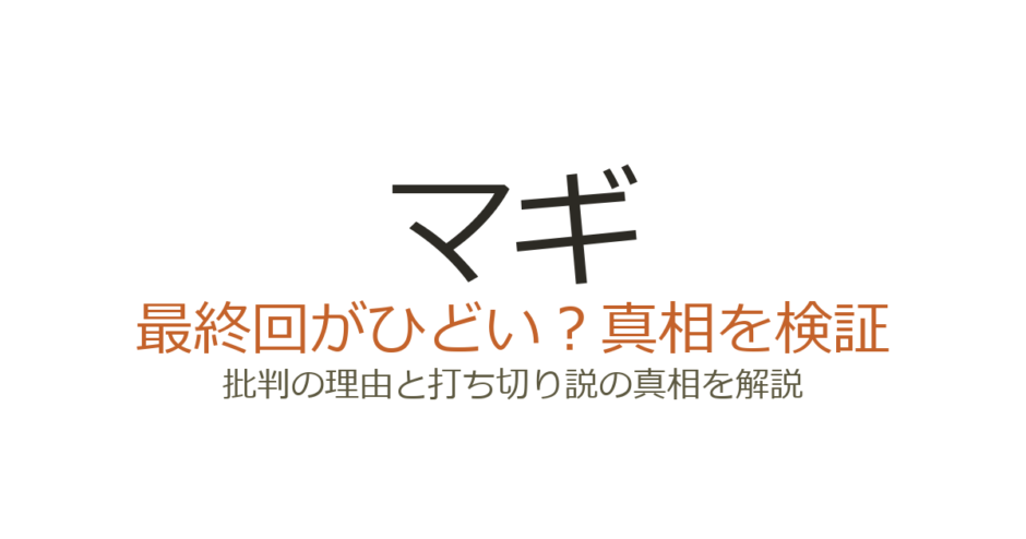 マギは2017年10月に最終回を迎えましたが、ネット上では「打ち切りだったのでは?」という声が少なくありません。ここでは、打ち切りと誤解された主な理由を解説します。