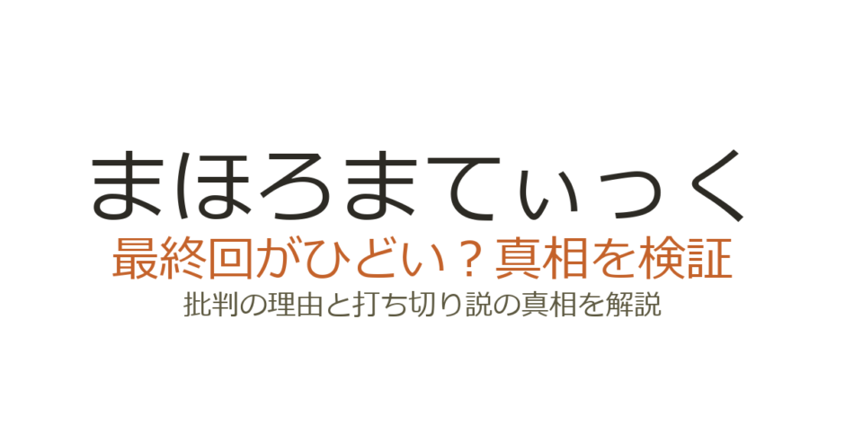 『まほろまてぃっく』の最終回は、特にアニメ2期『もっと美しいもの』のラストが「ひどい」と批判されており、ラブコメだった作風が一変して陰鬱な展開になったことが最大の原因です。アニメが原作漫画の完結前に独自の結末を描いたため、原作とは全く異なるラストになったことも混乱を招きました。この記事では、最終回が批判された具体的な理由、打ち切りだったのかの判定、原作者・作画担当の現在の活動について解説します。