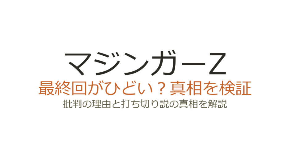 『マジンガーZ』の最終回は、無敵だったはずのマジンガーZがミケーネ帝国の戦闘獣に無残に敗れ、突如現れたグレートマジンガーに主役の座を奪われるという衝撃的な展開で、放送から50年以上経った今でも「ひどい」「トラウマ」と語られ続けています。最終回の唐突さから「打ち切りだったのでは?」という声もありますが、最高視聴率30.4%を記録した大ヒット作であり、打ち切りではありません。この記事では、マジンガーZの最終回がなぜ批判されるのか、その背景にあった制作事情と打ち切り説の真相を詳しく解説します。