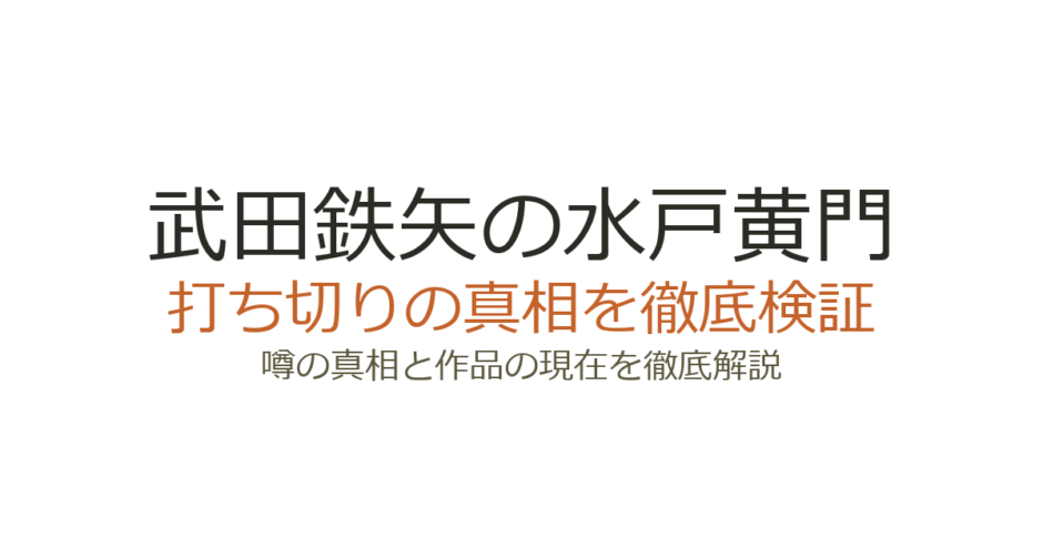 制作側は記者会見で「余力を残しての幕引き」と説明しましたが、テレビ離れや地上波全体の視聴率低下が背景にあったとみられています。この「地上波打ち切り」の印象が強く残っていることが、武田鉄矢版を含む水戸黄門全体に「打ち切り」のイメージを結びつける大きな要因です。