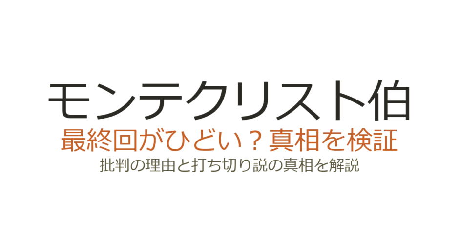 ドラマ『モンテ・クリスト伯 -華麗なる復讐-』の最終回は、ラストシーンの曖昧さや復讐劇の虚しい結末から「ひどい」と感じた視聴者が少なくありませんでした。初回視聴率5.1%という厳しいスタートもあり、打ち切りを疑う声も上がっています。この記事では、最終回が批判された具体的な理由と、打ち切り疑惑の真相、そして制作陣の現在について詳しく解説します。
