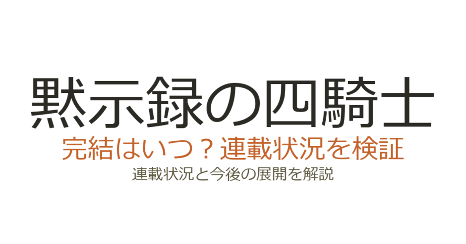 黙示録の四騎士は2026年4月時点で既刊25巻まで発売されており、安定したペースで連載が継続されています。鈴木央先生は「休載しない作家」として業界で知られており、黙示録の四騎士においても定期的な掲載を維持しています。