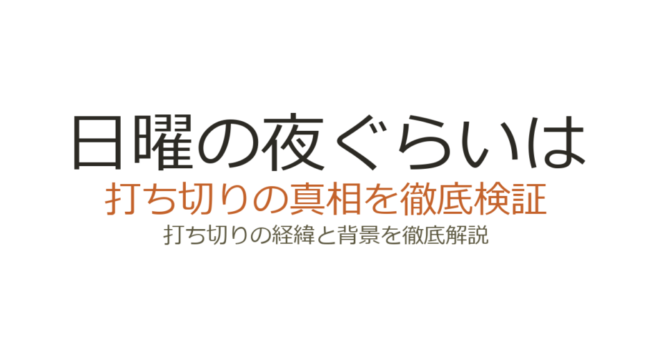 『日曜の夜ぐらいは…』が打ち切りと噂された背景には、視聴率や放送枠に関する複数の要因がありました。ここでは、なぜ打ち切り説が広まったのかを一つずつ検証していきます。