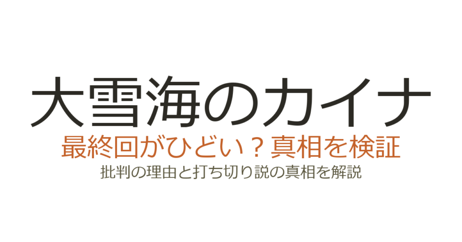『大雪海のカイナ』の最終回は、物語が完結せず劇場版に丸投げされた構成や、最終話の駆け足展開が「ひどい」と批判を集めた。