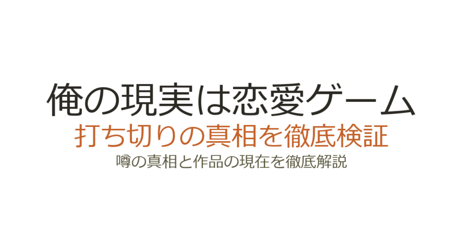 『俺の現実は恋愛ゲーム?? ~かと思ったら命がけのゲームだった~』は打ち切りではなく、漫画版・Web小説版ともに連載が続いている作品です。小説家になろうから原作が削除されたことや、書籍版(ファミ通文庫)が1巻で止まっていることが打ち切り説の主な原因となっています。この記事では、打ち切りと言われた理由と、各媒体の現在の連載状況を詳しく解説します。