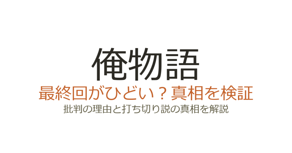 「俺物語 最終回 ひどい」という検索も多く見られます。最終回そのものへの評価と、完結に至るまでの展開への不満が混在しているのが実情です。