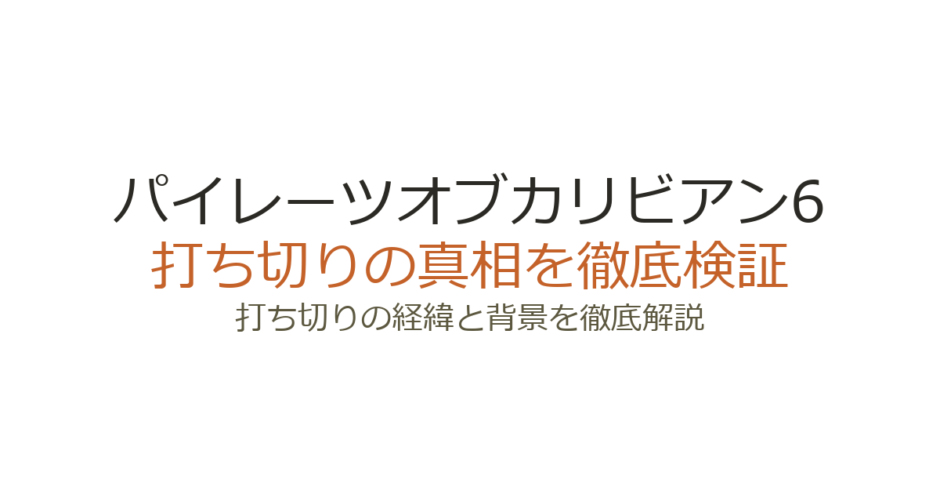 2017年の第5作公開以降、新作の公開予定が一向に発表されないことから、「パイレーツオブカリビアン6は打ち切りになったのでは?」という声がネット上で広がっています。