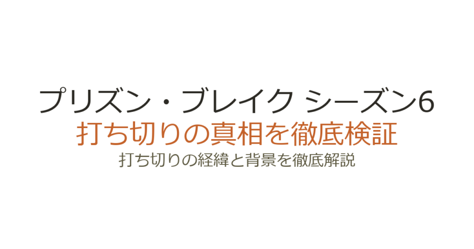 『プリズン・ブレイク』のシーズン6は、主演俳優の降板やFOXの制作中止判断により、打ち切りが確定しています。シーズン5の評価低迷や主演ウェントワース・ミラーの降板宣言が重なり、シーズン6の企画は頓挫しました。この記事では、シーズン6が打ち切りになった具体的な理由と、Huluで始動した新シリーズの最新情報を解説します。