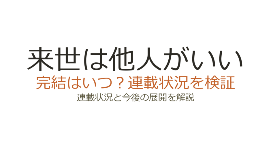 来世は他人がいいは完結している?連載状況まとめ