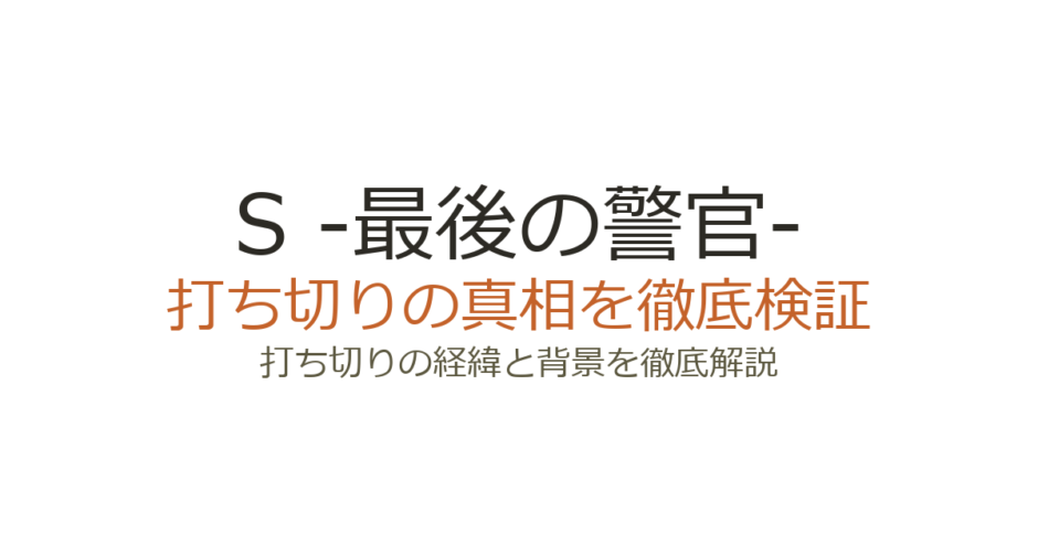 『S -最後の警官-』は打ち切りではなく、全20巻で完結した作品です。ドラマ版の視聴率低下や劇場版映画の興行不振が重なり、原作漫画まで打ち切りだったのではという誤解が広まりました。この記事では、打ち切りと言われた3つの理由と、打ち切りではない根拠を詳しく解説します。