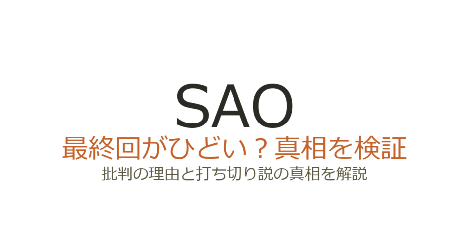 SAO(ソードアート・オンライン)のアニメ最終回は、突飛な展開や駆け足のストーリーが「ひどい」と批判を集めました。特にアリシゼーション War of Underworld最終話で描かれた200年後の宇宙展開が、多くの視聴者を困惑させています。この記事では、SAOの最終回がひどいと言われる具体的な理由と、作品が打ち切りだったのかどうかを解説します。