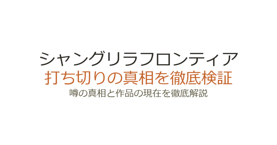 『シャングリラ・フロンティア』は打ち切りではなく、原作・漫画ともに連載が続いている作品です。原作小説の更新頻度が低下したことや、書籍化(ラノベ化)されていない異例の展開がファンの間で不安を招き、「打ち切りでは?」という噂が広まりました。この記事では、打ち切りと言われた理由3つと、打ち切りではない根拠を客観的データとともに解説します。