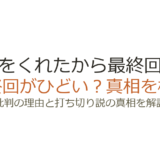 最終回が「ひどい」と評価された主な原因は、打ち切りによる駆け足展開ではなく、シリーズ全体の構成上の問題です。一話完結型に重きを置きすぎた結果、縦軸の守谷ストーリーに十分な尺を確保できなかったことが根本的な原因と考えられます。