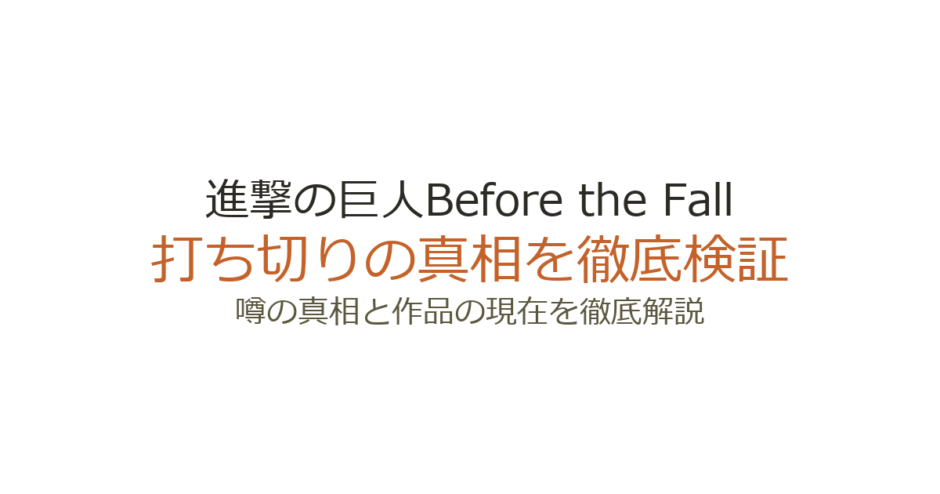 『進撃の巨人 Before the Fall』は完結済みの作品ですが、ネット上では「打ち切りだったのでは」という声が根強く見られます。その背景には、作品の構造や本編との関係性からくるいくつかの誤解があります。