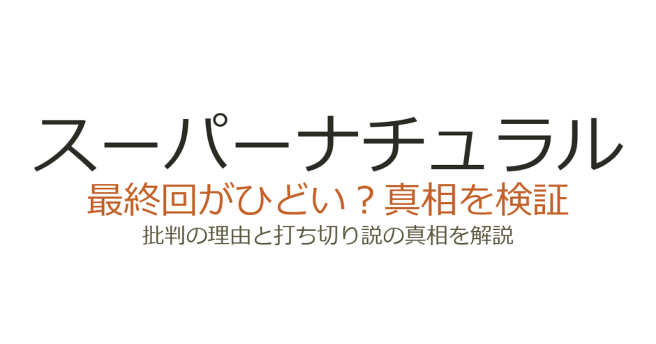 『スーパーナチュラル』の最終回は、主人公ディーンの呆気ない死に方や重要キャラクターの不在が原因で「ひどい」と批判されました。ただし15シーズン・全327話を完走しており、打ち切りではなくキャスト・制作陣の合意による完結です。この記事では、最終回が批判された具体的な理由と、打ち切り説の真相について詳しく解説します。