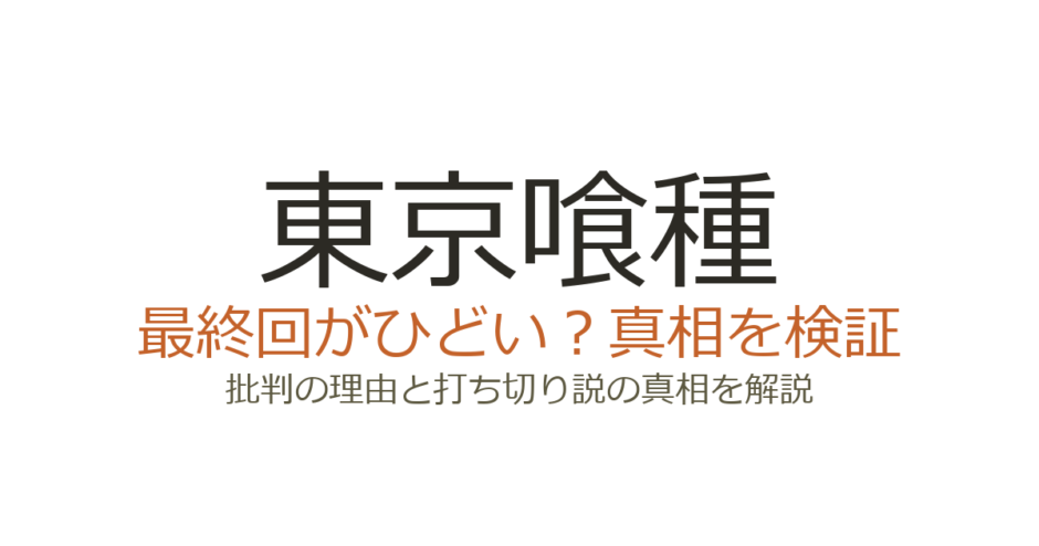 『東京喰種トーキョーグール:re』の最終回は、伏線の未回収や駆け足展開を理由に「ひどい」と批判する声が多く上がりました。シリーズ累計4,700万部を超える大ヒット作でありながら、終盤の急展開と説明不足が読者の不満を招いた形です。この記事では、最終回がひどいと言われる具体的な理由と、打ち切り説の真相、作者・石田スイの現在について詳しく解説します。