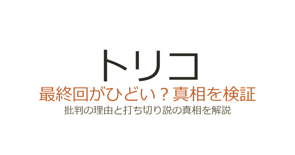この記事では、トリコが打ち切りと言われる理由、アニメ最終回がひどいと評される背景、そして作者・島袋光年の現在について詳しく解説します。