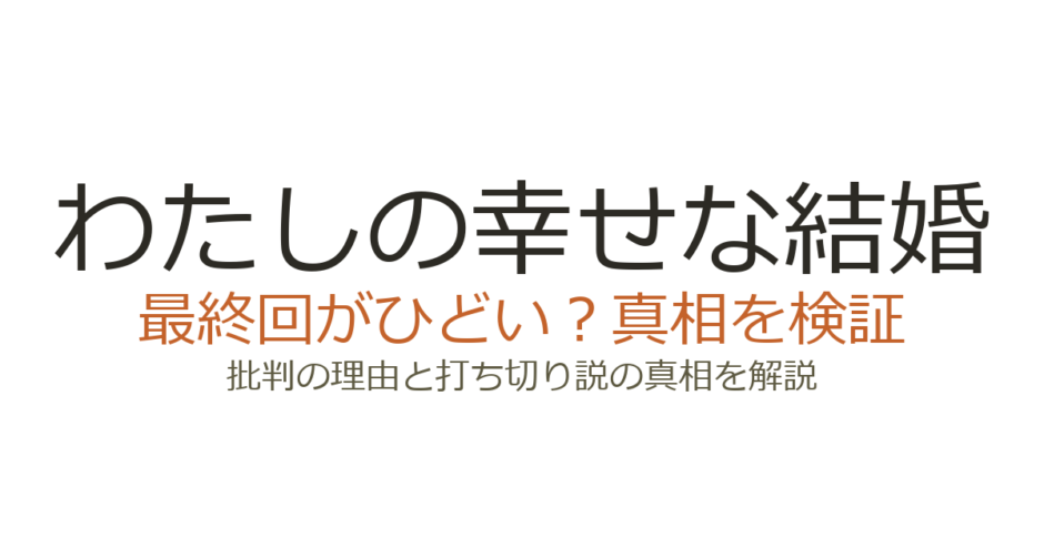 わたしの幸せな結婚の最終回がひどいと言われる理由